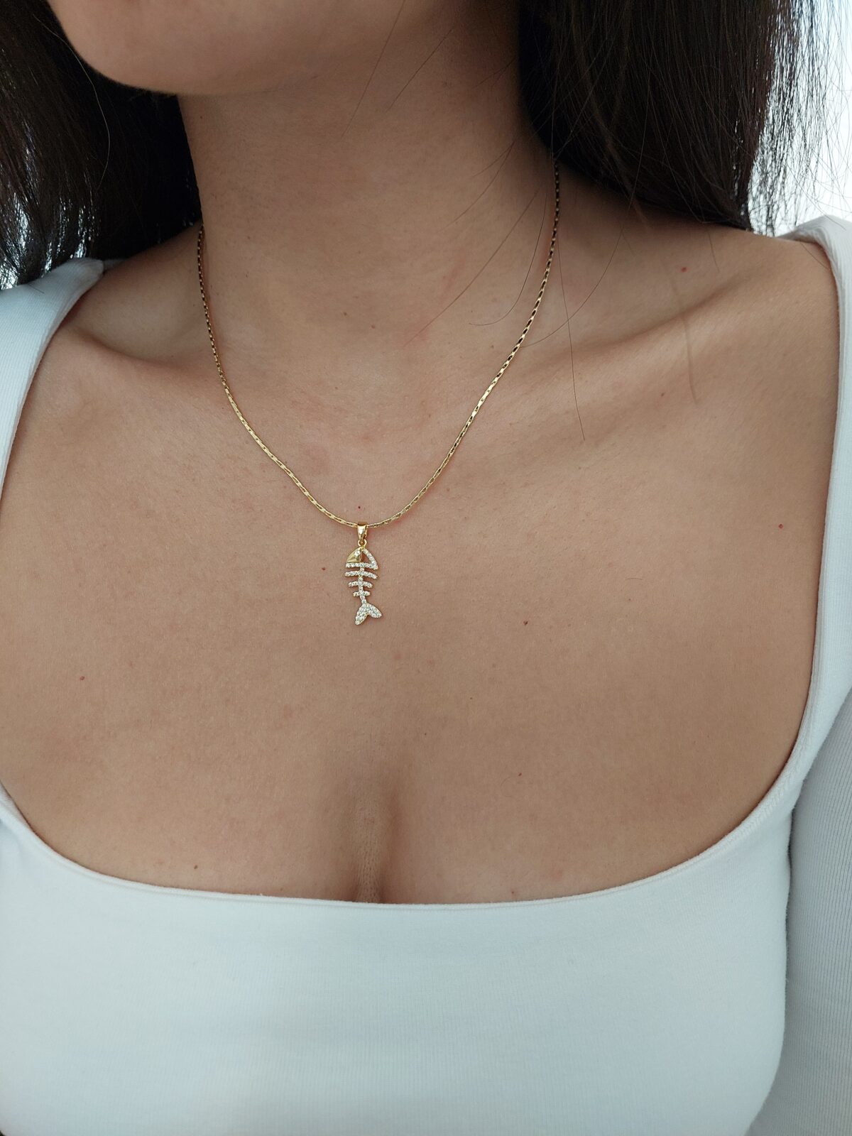 Zirkon Taşlı Balık Kolye
