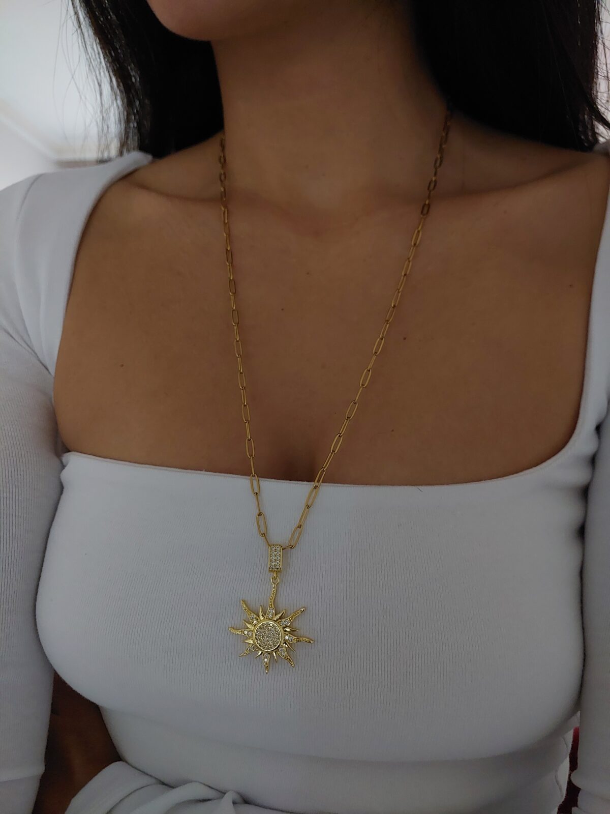 Çelik Zincir Zirkon Taşlı Güneş Kolye ₺279,00