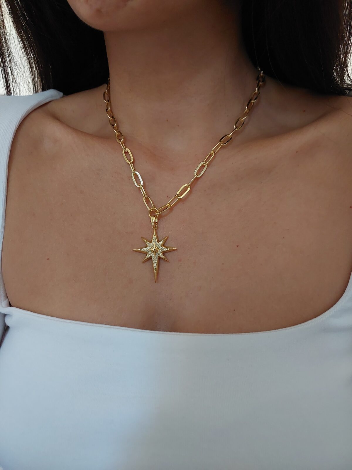Zirkon Taşlı Kutup Yıldızı Kolye