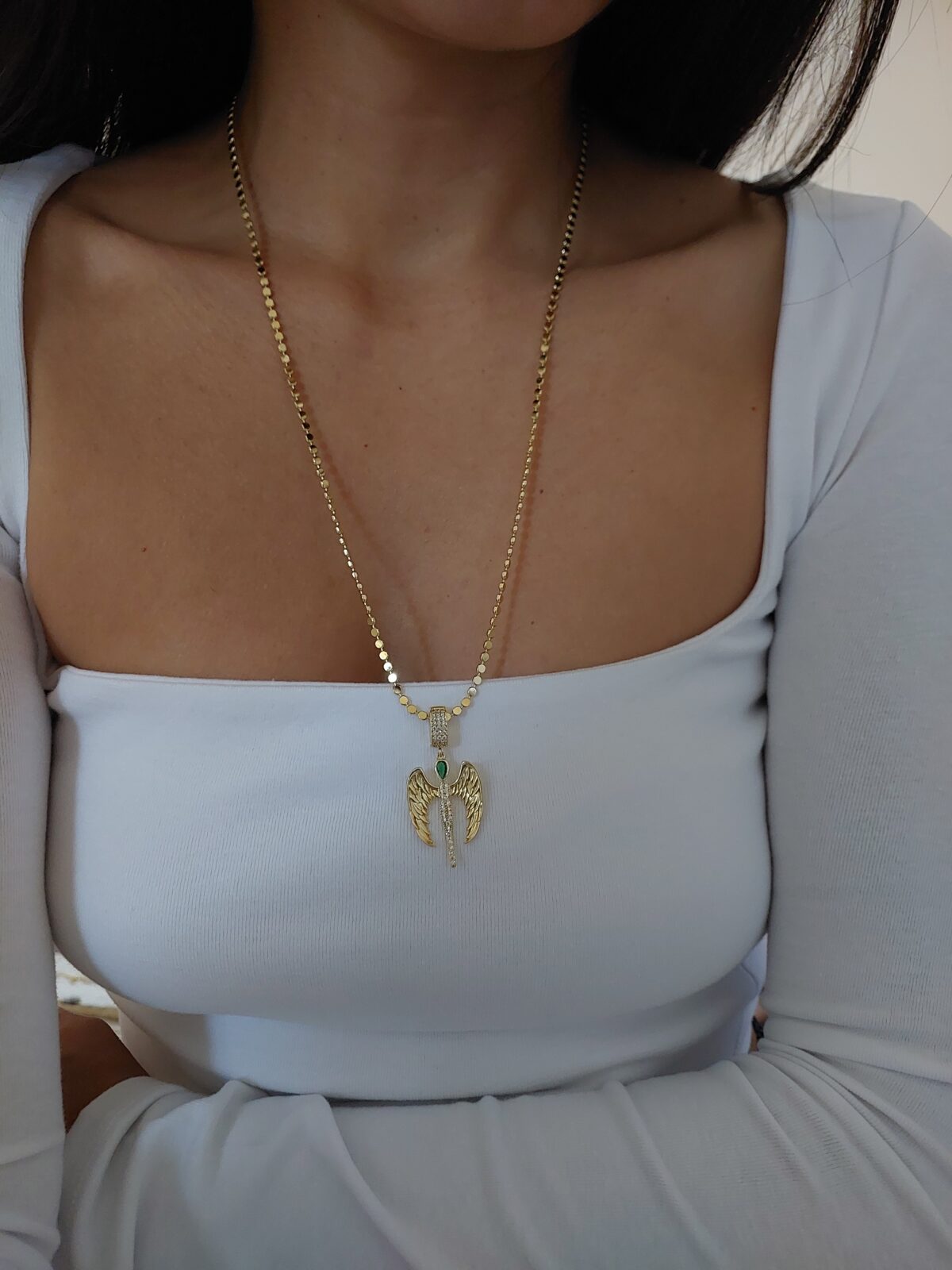 Zirkon Taşlı Melek Kanadı Halat Zincir Kolye